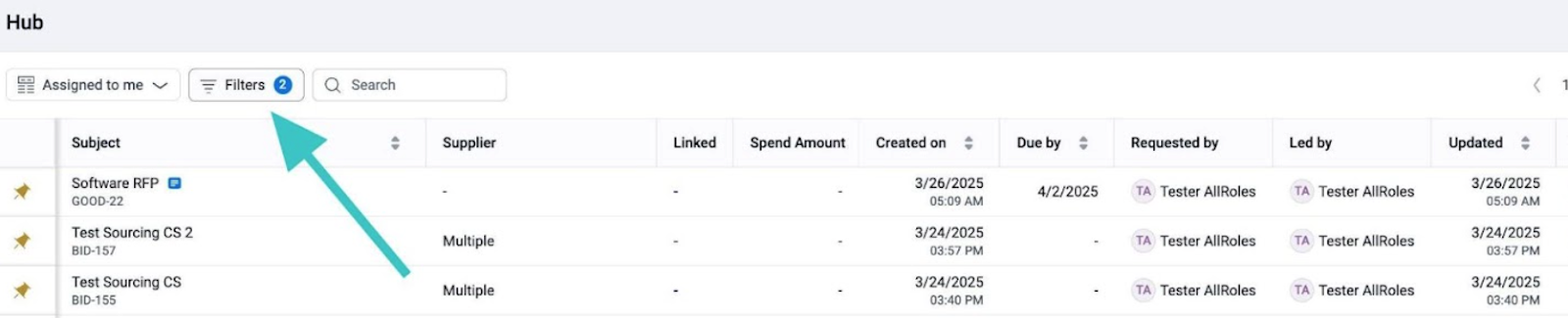 There are a variety of Filters available in Hub for easier navigation through Projects. To access Filters, click “Filters”