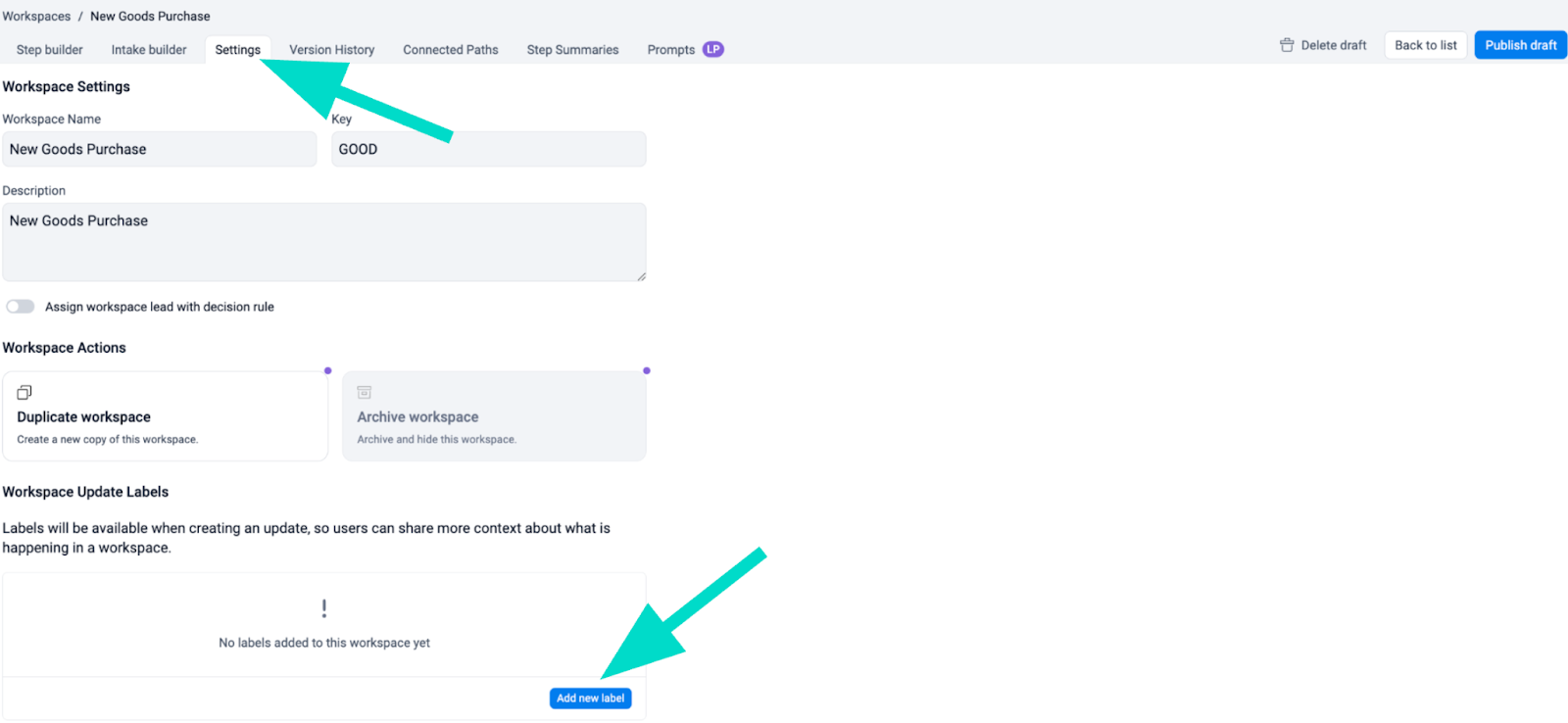 From there, click Settings, then “Add New Label” (pictured below).