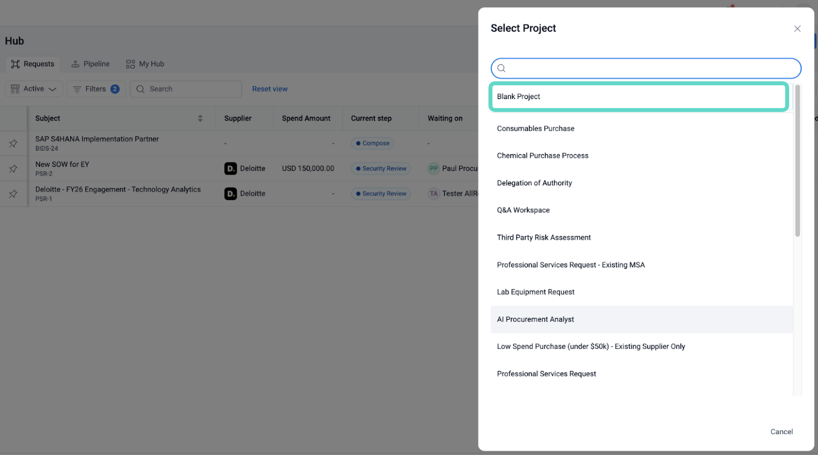 From Hub, users can also create "Blank Projects" without assigning a workflow. This allows teams to start planning future projects right away, and once a workflow is created or chosen, it can be linked to the "Blank Project" later.