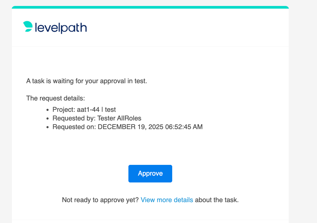 When stakeholders are notified to take approval actions within the Notifications Tab (or across email, Slack, or Microsoft Teams), they can directly approve from the notifications. Clicking "Approve" would trigger an approval automatically.