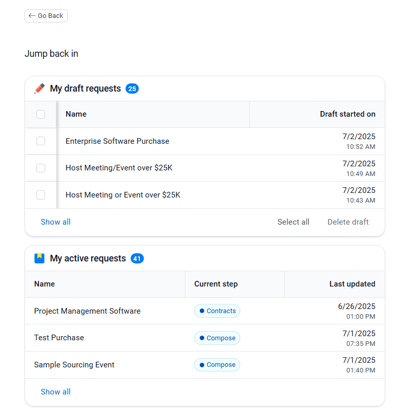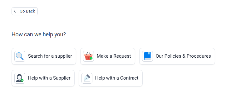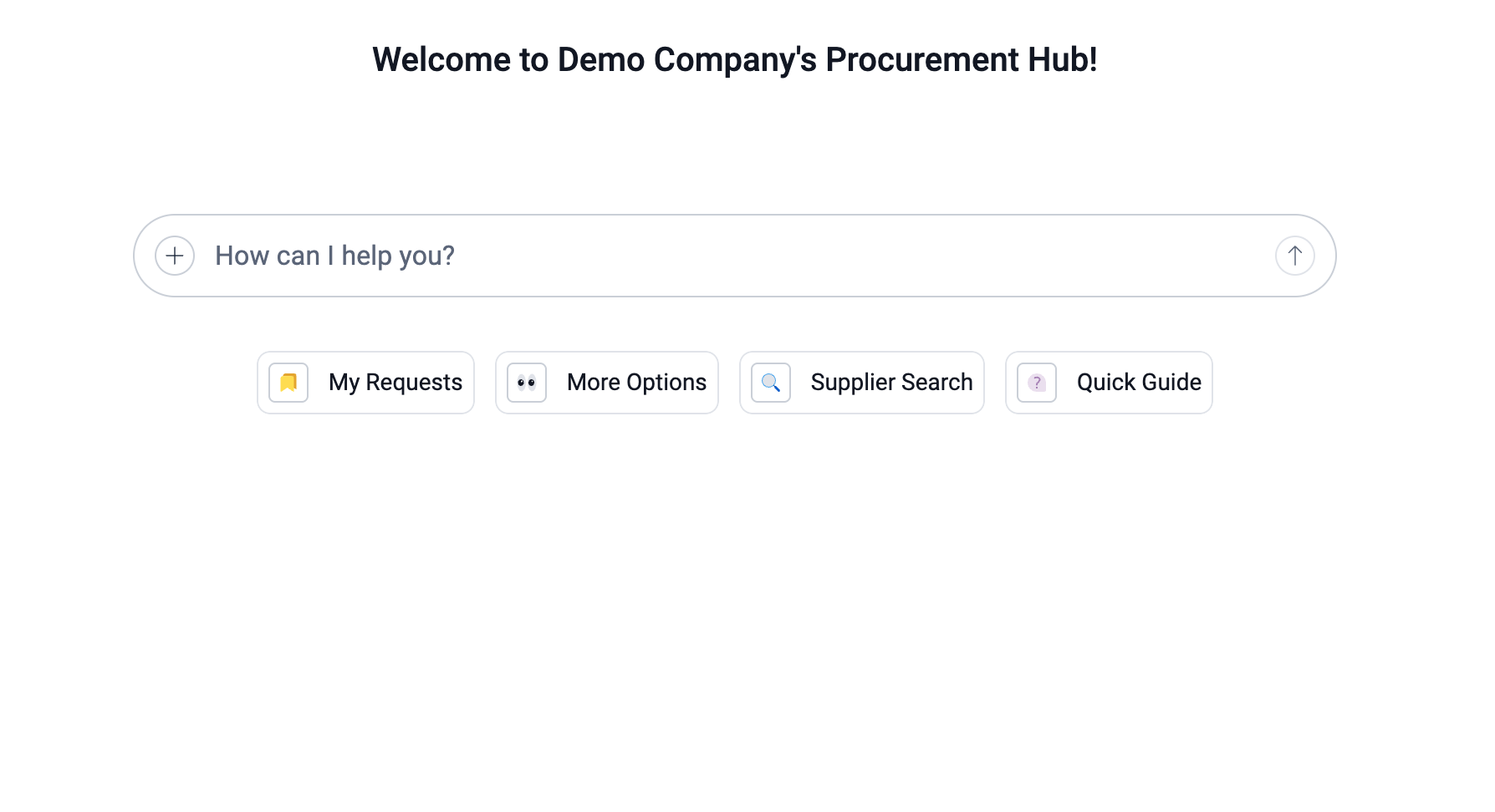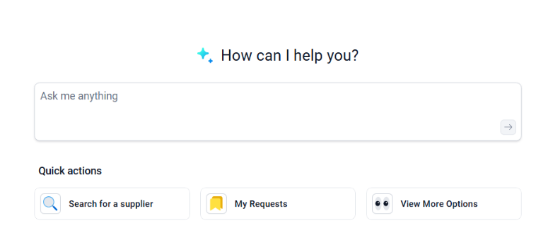 - Offer quick actions such as Search for a Supplier, My Requests, or View More Options