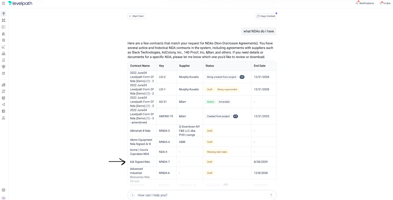- AI Front Door queries all active and historical NDAs in the system across all suppliers