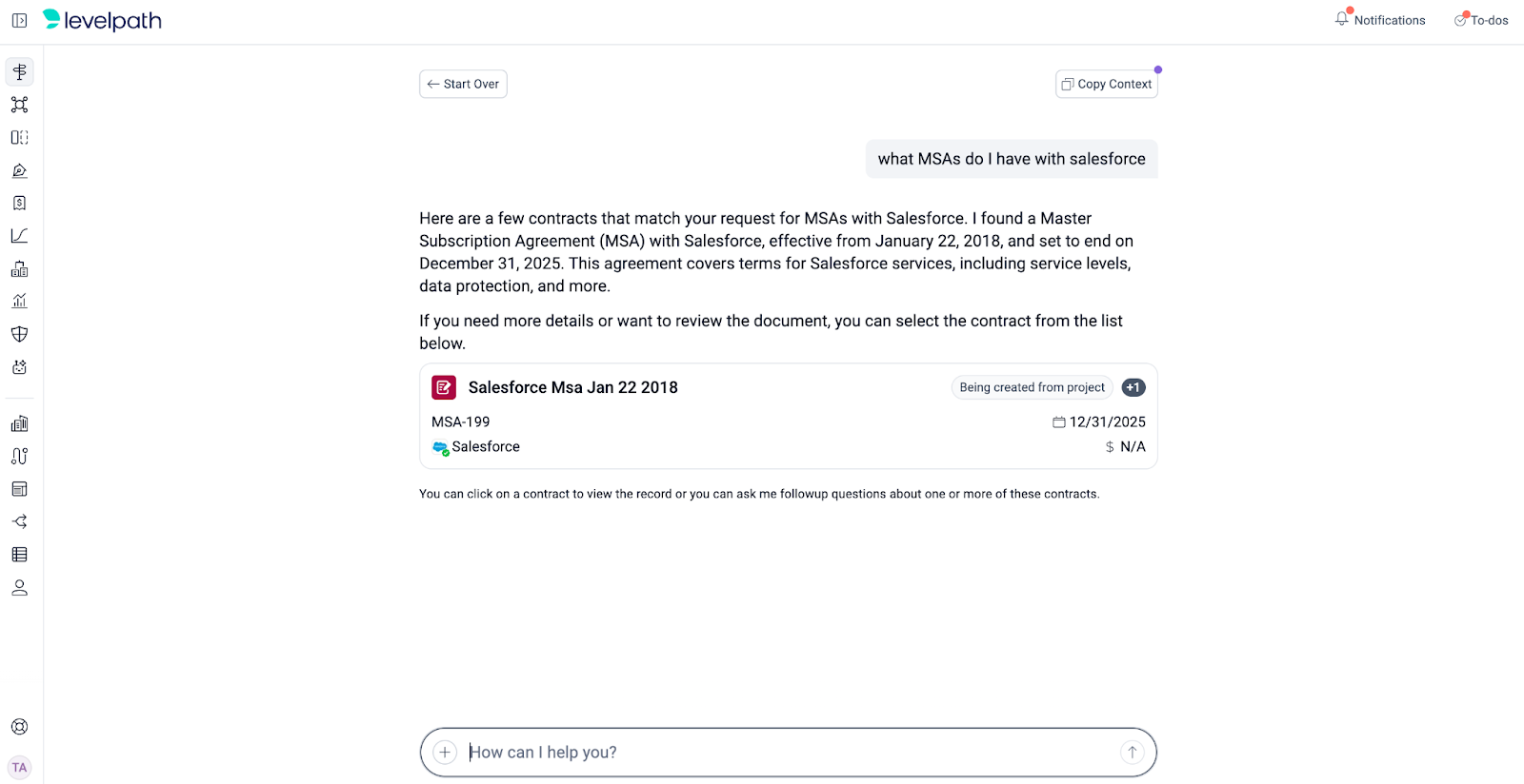 - When you select a contract record, Levelpath will take you to the contract workflow