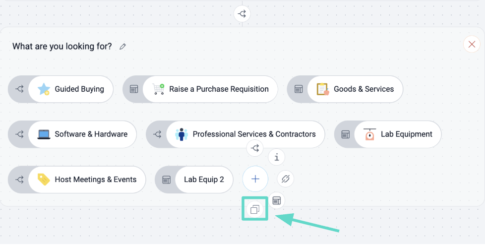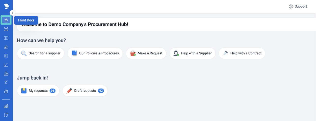 Front Door is a guide for the end users to get started on the right workflow for their needs. It directs the requester by providing a series of questions to narrow down the correct intake form or resource to begin their request. See photos below for example step order.