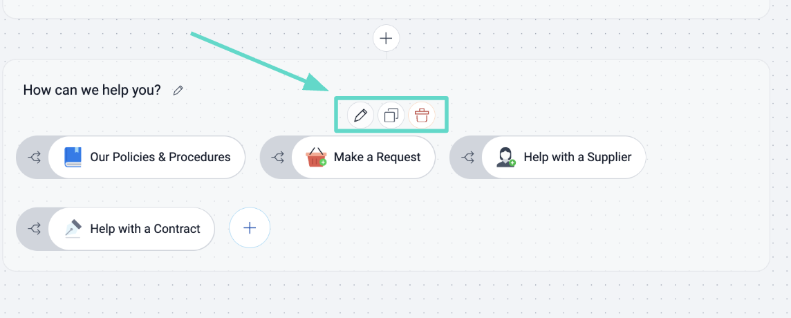 You will have the option to Edit the opening question, add a new branch, or edit the current branches, and edit any endpoints. You will also see additional functionality with the ability to drag and drop the order of the branches to best suit your needs.