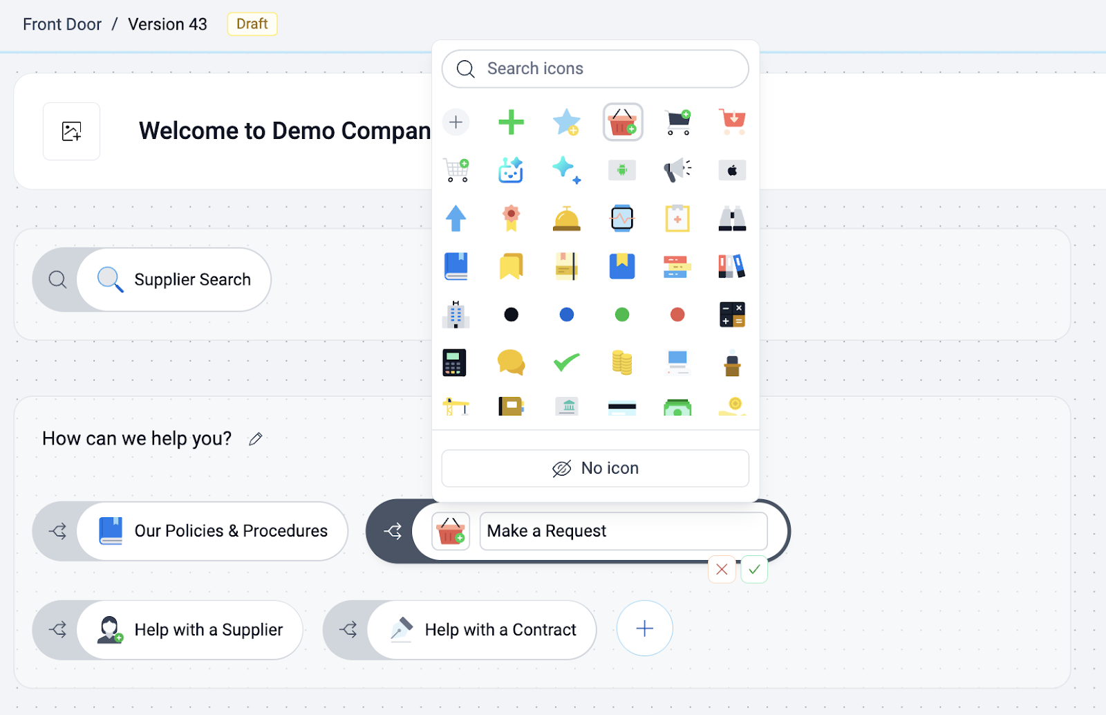 Note: AI Front Door also supports configurable instruction prompts that allow you to tailor guidance to your organization’s processes and terminology. By customizing these prompts, stakeholders receive the right follow-up questions and direction aligned with how your team works.