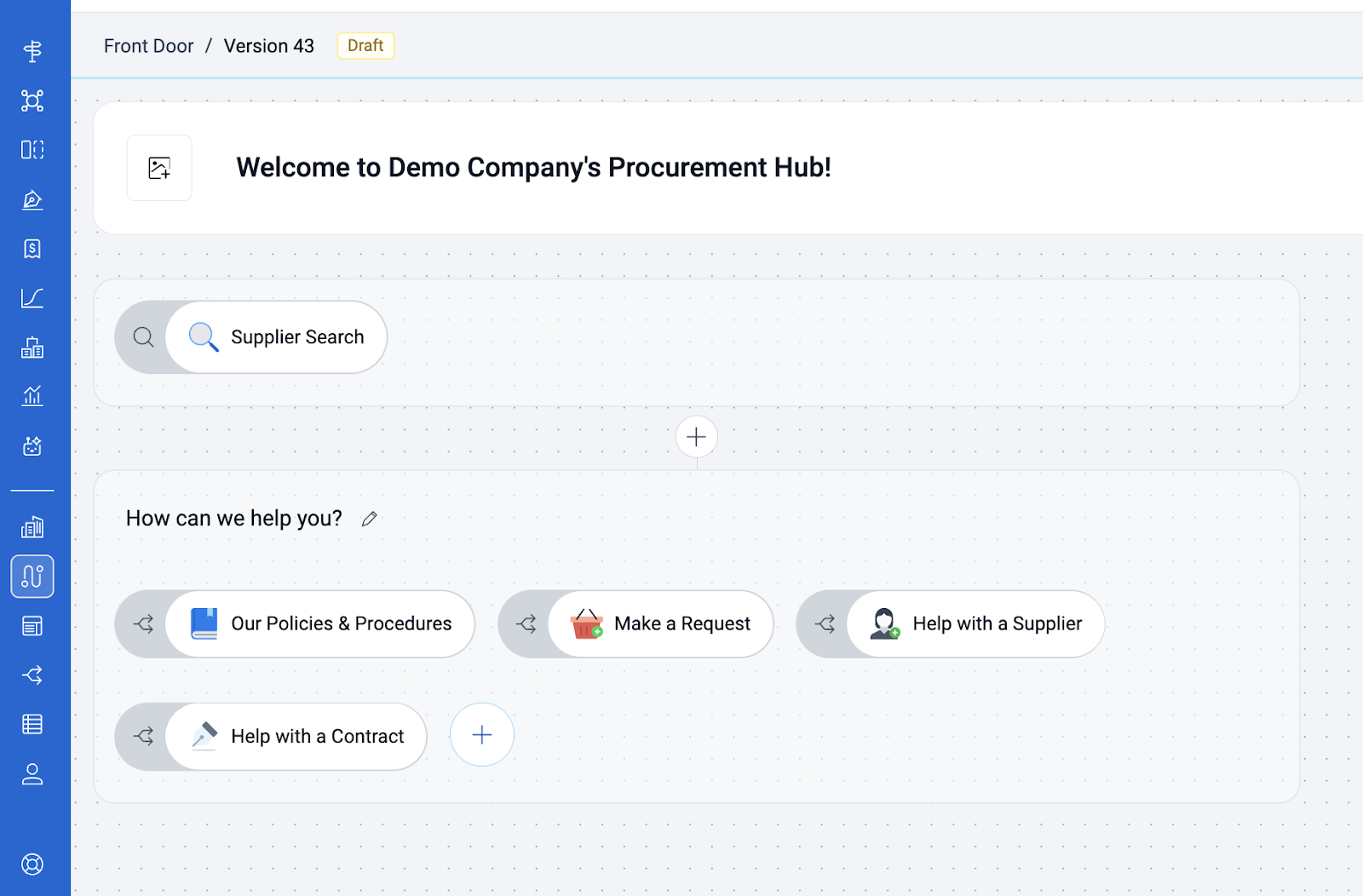 Click on the most recent draft OR select "+New Draft". You will then be brought to the current path with the ability to edit the configuration that mimics the user experience stakeholders will see in Front Door.