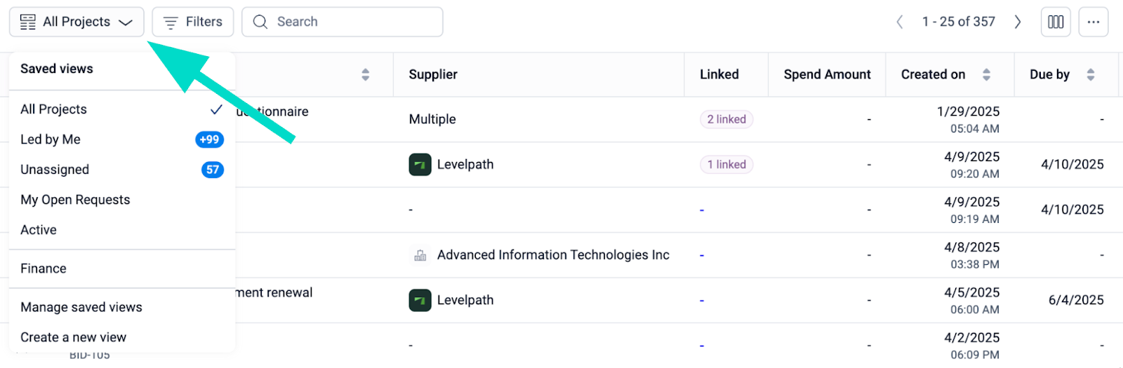 There are a variety of Filters available in Hub for easier navigation through Projects. To access Filters, click “Filters”