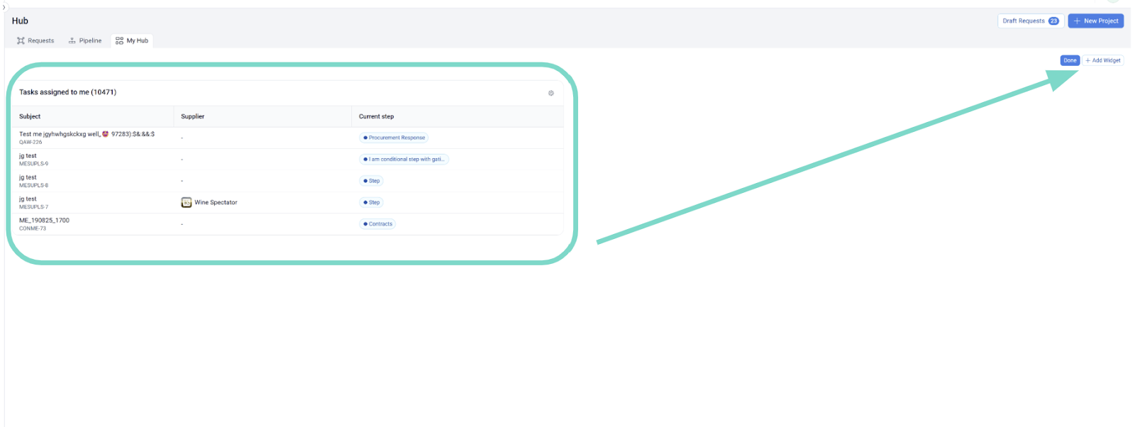 Users are also able to rearrange widgets to better tailor My Hub to their needs. To adjust widgets, users can select ‘Edit Widgets’, if they have not already done so. Once ‘Edit Widgets’ has been selected, users can drag and drop widgets to their desired location by selecting the dots to the left side of each widget, and dragging it to the desired location.