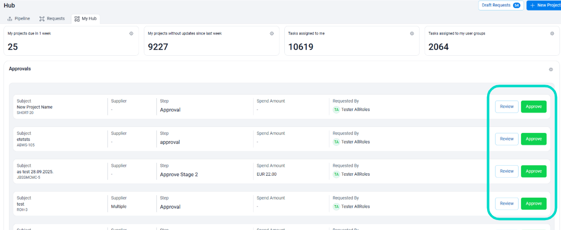 The Approvals Widget in My Hub gives users a single place to view and act on all assigned project approvals. With quick approve or review options, it streamlines workflows and saves time by reducing clicks and speeding up the approval process.