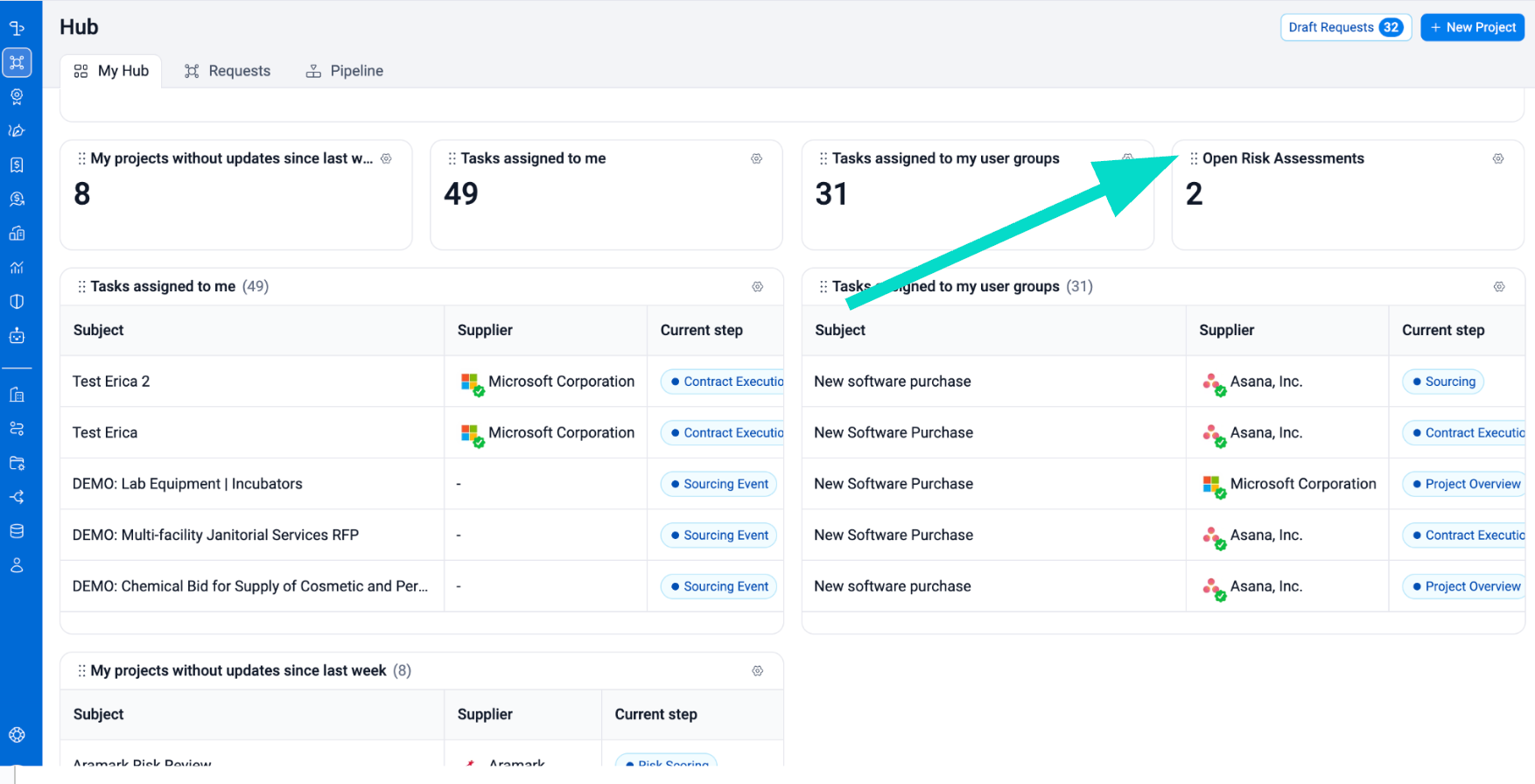 Within the Hub, the Requests tab shows all active projects they are a part of.